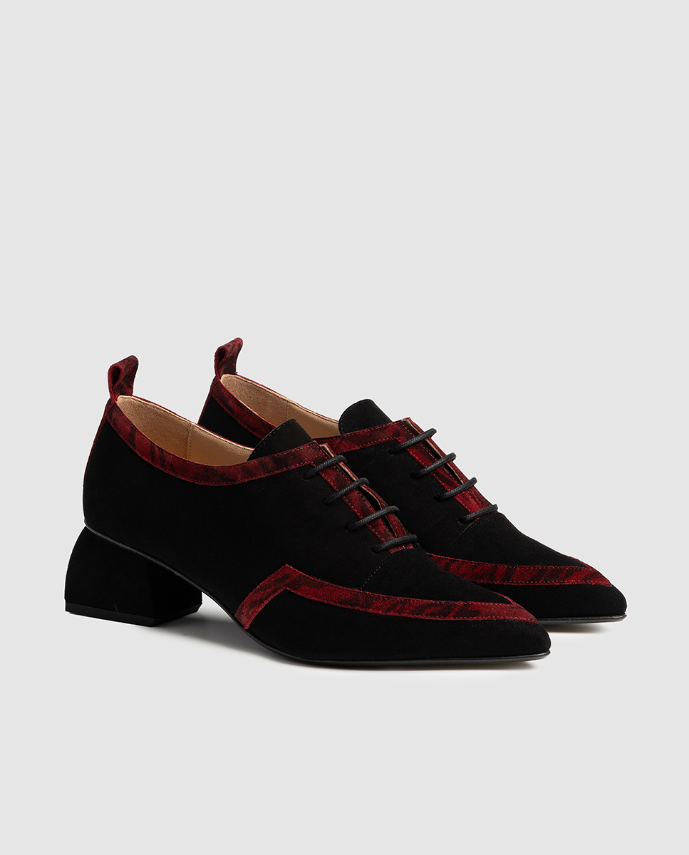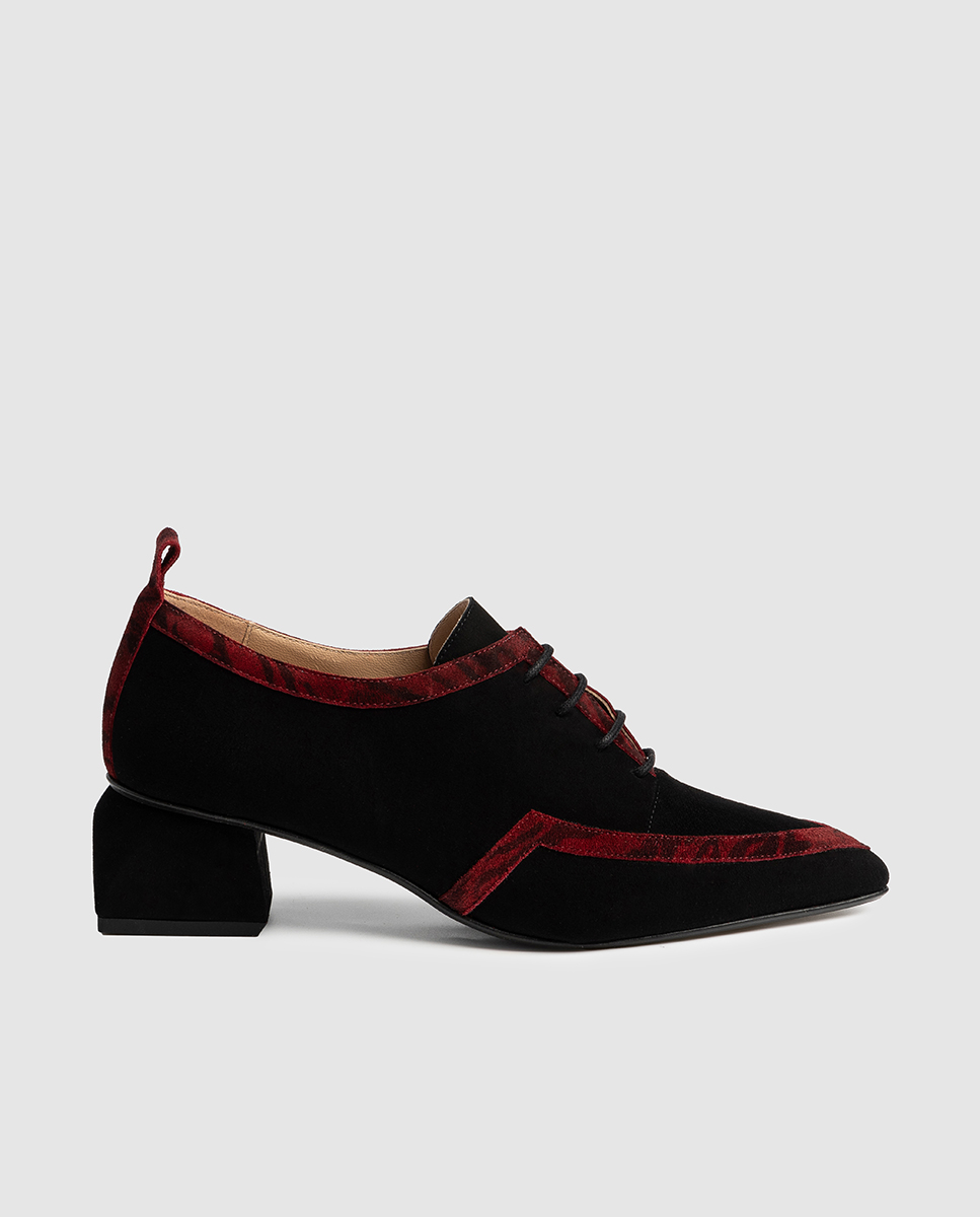 Κομψό και ξεχωριστό, το δερμάτινο μοκασίνι ANTE NEGRO ZEBRA CHERRY συνδυάζει την πολυτέλεια του μαύρου suede με έντονες μπορντό zebra λεπτομέρειες, δημιουργώντας ένα παπούτσι που απογειώνει κάθε εμφάνιση. Ένα μοντέρνο twist σε ένα κλασικό σχέδιο. Κατασκευασμένο από γνήσιο δέρμα, το παπούτσι διαθέτει μαλακή suede υφή για εξαιρετική άνεση όλη την ημέρα. Οι μπορντό zebra λεπτομέρειες στη μύτη, στο περίγραμμα και στη φτέρνα προσθέτουν δυναμικό χαρακτήρα και fashion-forward αισθητική. Το χαμηλό, σταθερό τακούνι το καθιστά ιδανικό για καθημερινή χρήση, ενώ το δέσιμο με κορδόνια προσφέρει τέλεια εφαρμογή και διακριτικό elegance.