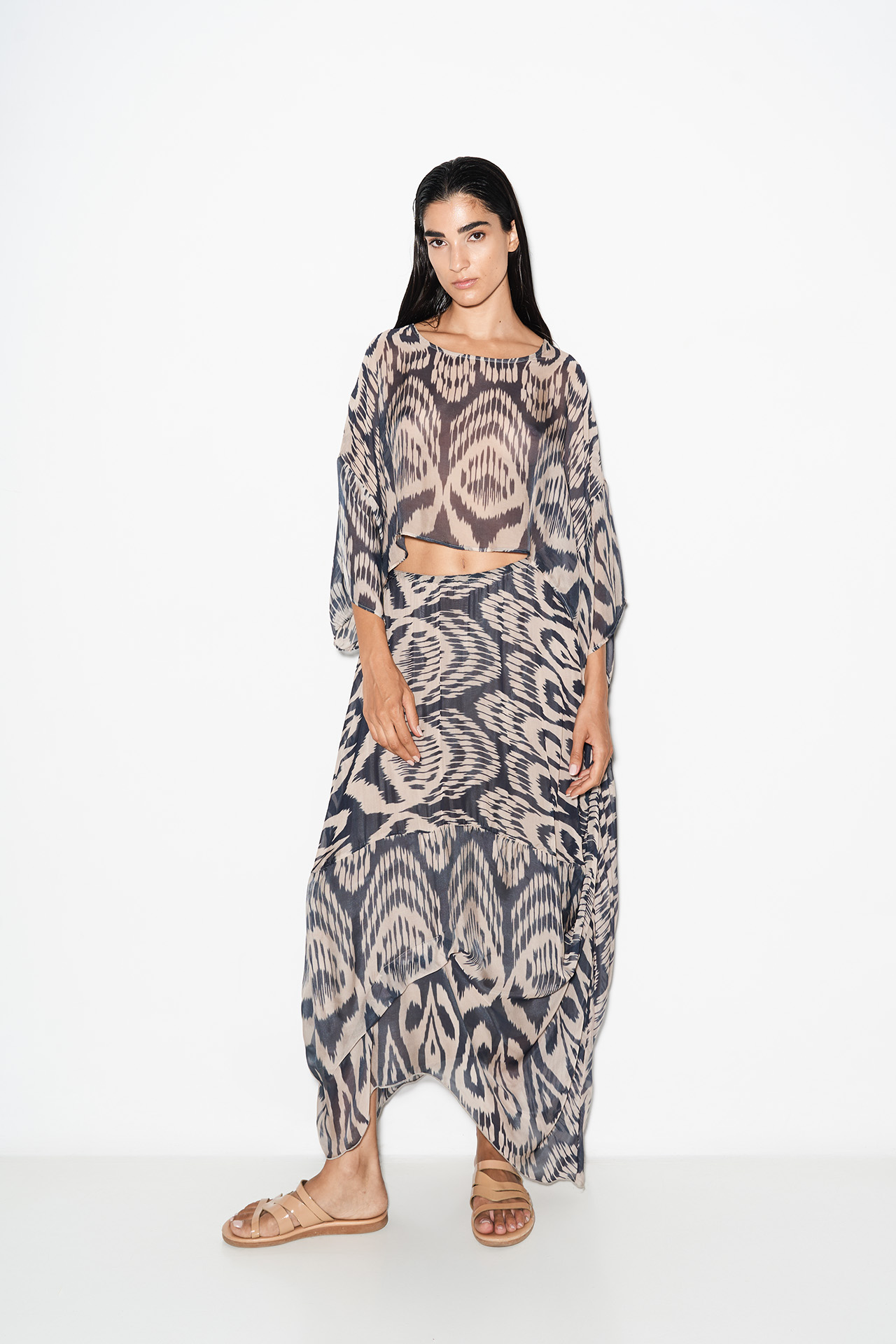 Crop top από εξαιρετικής ποιότητας μετάξι. Με την φαρδιά γραμμή και το see-through ύφασμα του, χαρίζει αιθέριες και φινετσάτες εμφανίσεις που θα κερδίσουν τα βλέμματα. Προτείνουμε να το συνδυάσετε με την Clover φούστα για το απόλυτο καλοκαιρινό look.