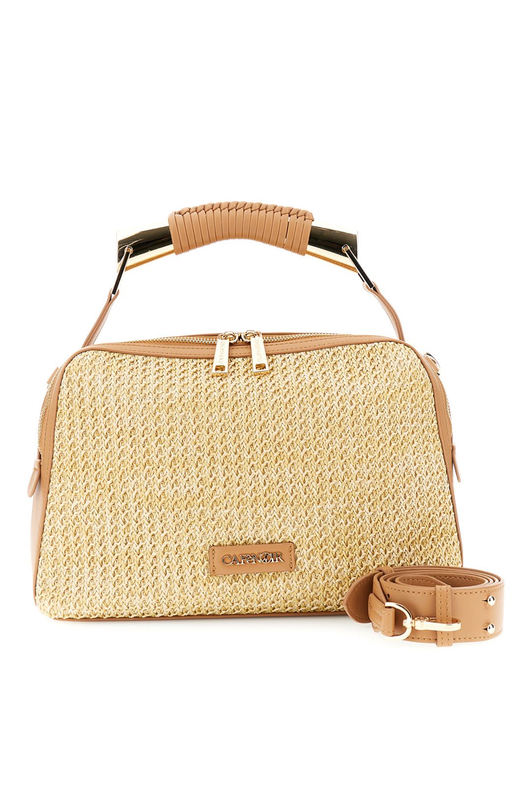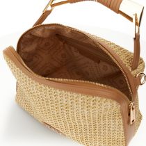 Κομψή ψάθινη τσάντα σε φυσική απόχρωση που αποπνέει καλοκαιρινό στυλ. Ο structured σχεδιασμός σε συνδυασμό με τις λεπτομέρειες σε καφέ και το αποσπώμενο λουρί την καθιστούν ιδανική επιλογή για καθημερινές αλλά και πιο ιδιαίτερες εμφανίσεις.