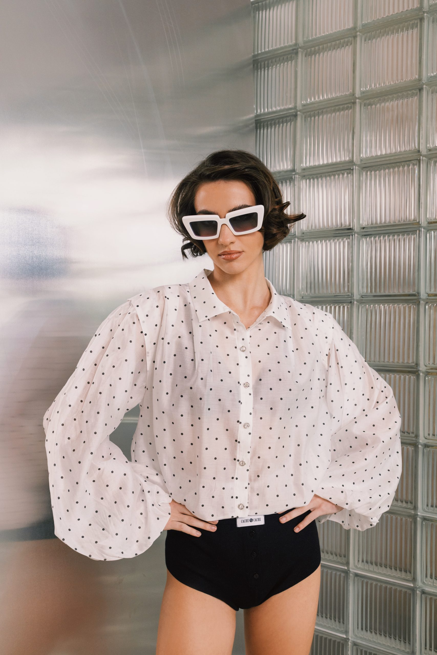 Κομψό πουκάμισο με διακριτικό πουά μοτίβο που χαρίζει θηλυκό και μοντέρνο στυλ. Το ελαφρύ ύφασμα και η άνετη γραμμή το καθιστούν ιδανικό για καθημερινές αλλά και πιο κομψές εμφανίσεις.