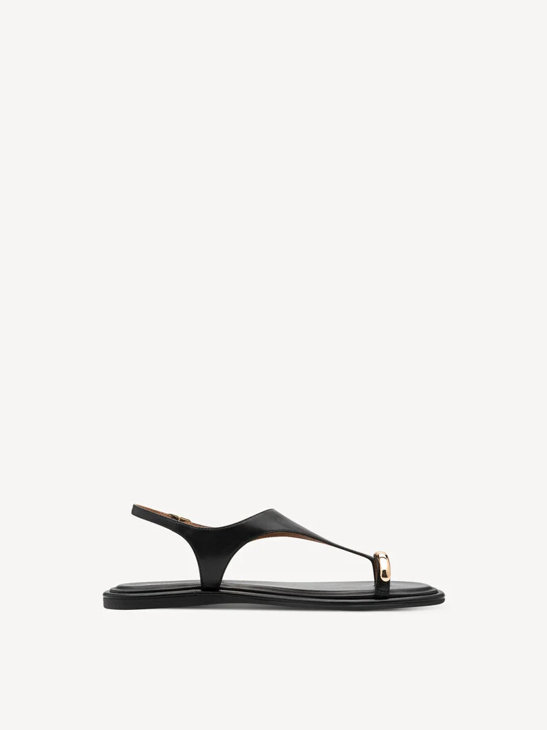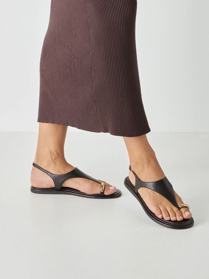 Κομψά δερμάτινα σανδάλια με minimal σχεδιασμό που προσφέρουν άνεση και διαχρονικό στυλ. Το λεπτό λουράκι και η διακριτική μεταλλική λεπτομέρεια δημιουργούν ένα κομψό αποτέλεσμα, ιδανικό για καθημερινές αλλά και πιο προσεγμένες καλοκαιρινές εμφανίσεις.