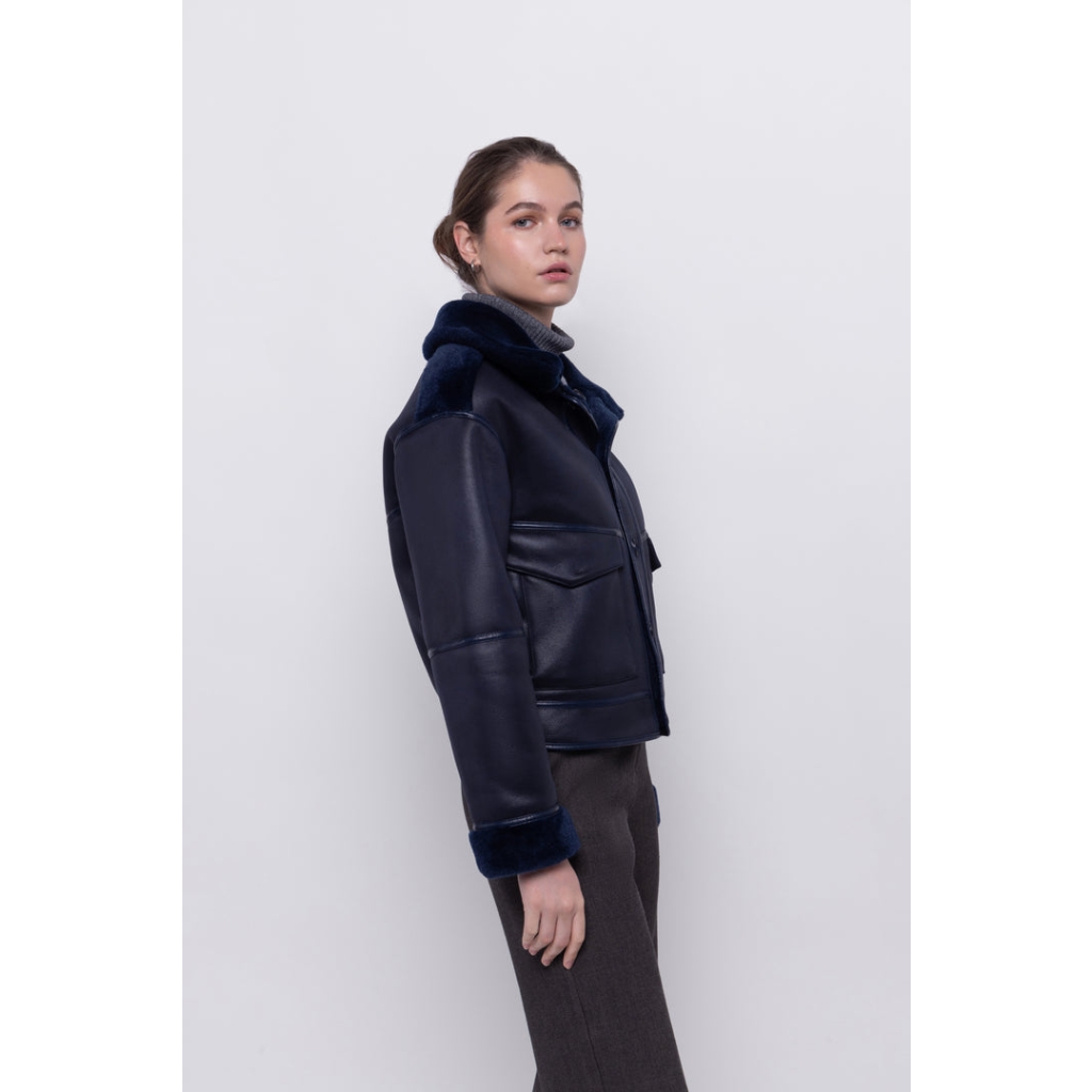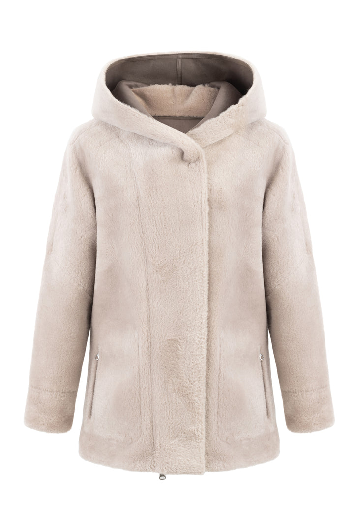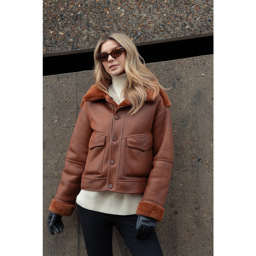 Διπλής Όψης Merino Look Μπουφάν – Καραμέλα
