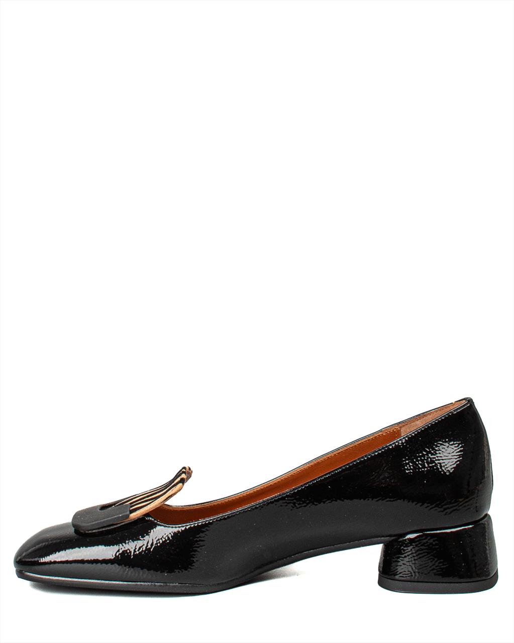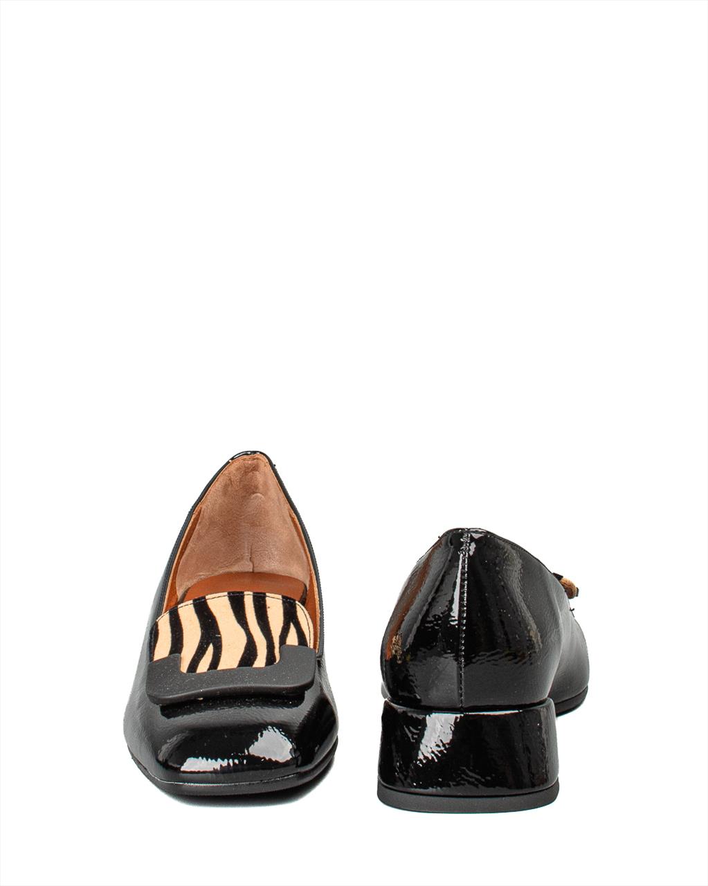 Κομψά και διαχρονικά loafers σε μαύρο λουστρίνι, ιδανικά για γυναίκες που αναζητούν άνεση και στιλ στην καθημερινότητα ή στη δουλειά. Κατασκευασμένα εξ ολοκλήρου από φυσικό δέρμα, τόσο εξωτερικά όσο και στο εσωτερικό, προσφέρουν εξαιρετική εφαρμογή και ανθεκτικότητα. Η ιδιαίτερη λεπτομέρεια στη διακοσμητική αγκράφα δημιουργεί ένα διακριτό, elegant στοιχείο, ενώ το χοντρό τακούνι ύψους 4 cm συνδυάζει άνεση και σταθερότητα. Η αντιολισθητική σόλα εξασφαλίζει ασφαλές βάδισμα καθ’ όλη τη διάρκεια της ημέρας.