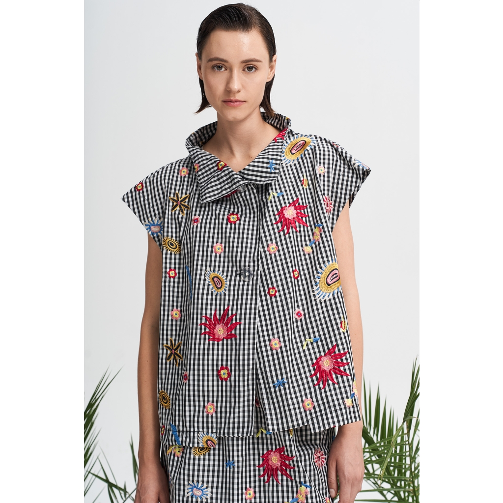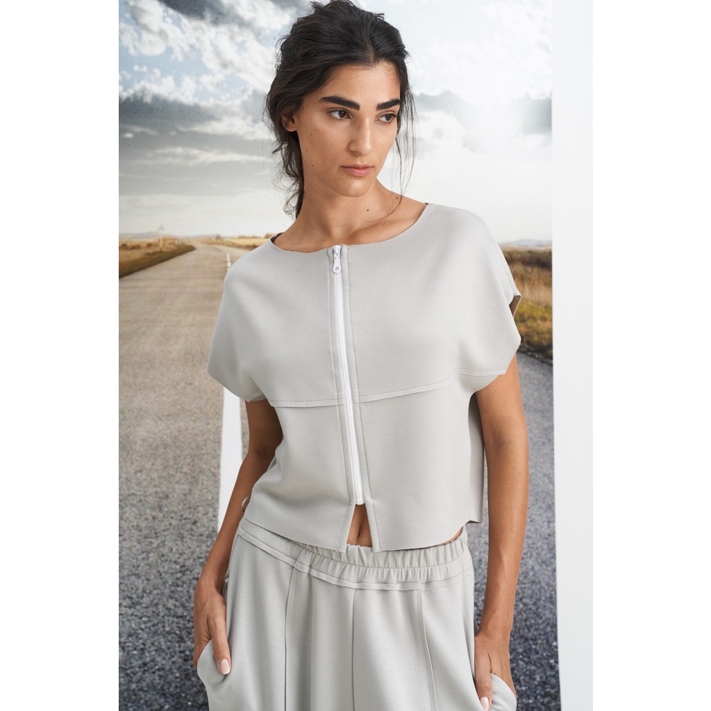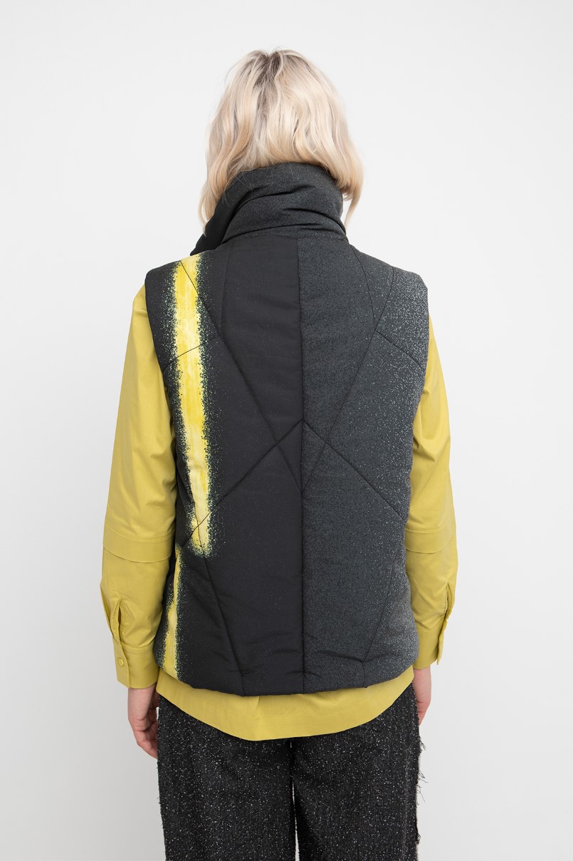 Καπιτονέ γιλέκο με όρθιο γιακά, πλαϊνές τσέπες σε ίσια γραμμή, τύπωμα Horizon