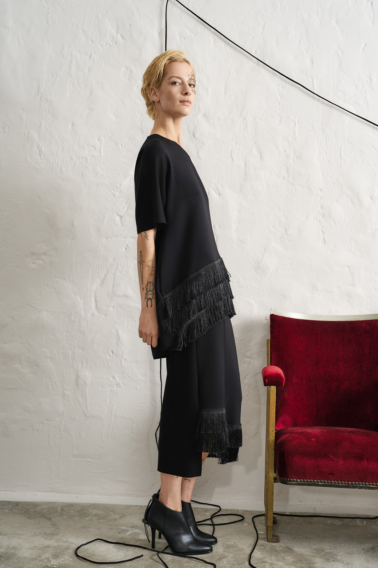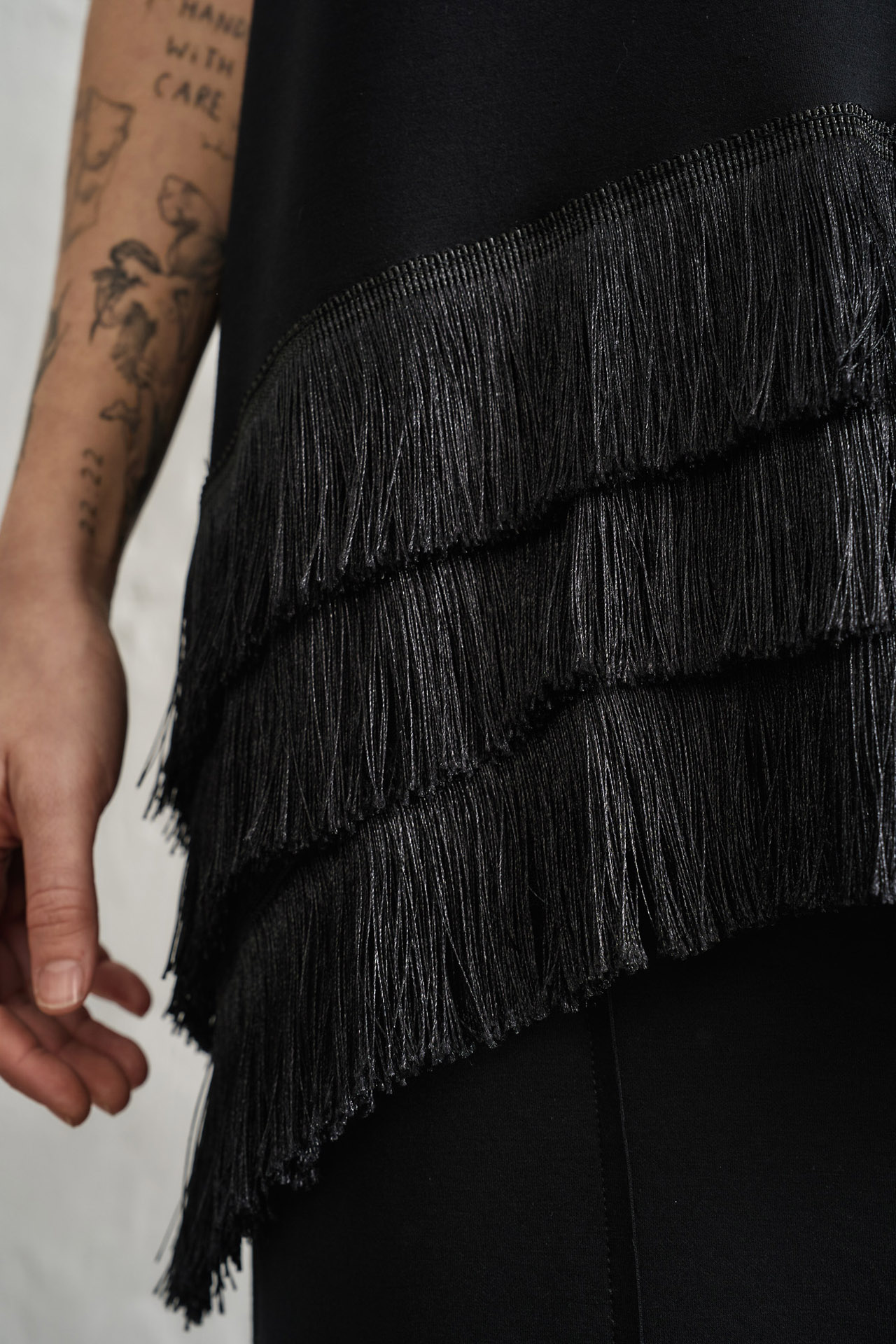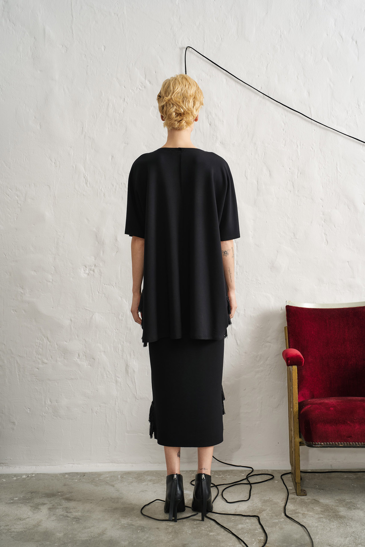 Oversize ασύμμετρη μπλούζα με κρόσσια από υψηλής ποιότητας ύφασμα.