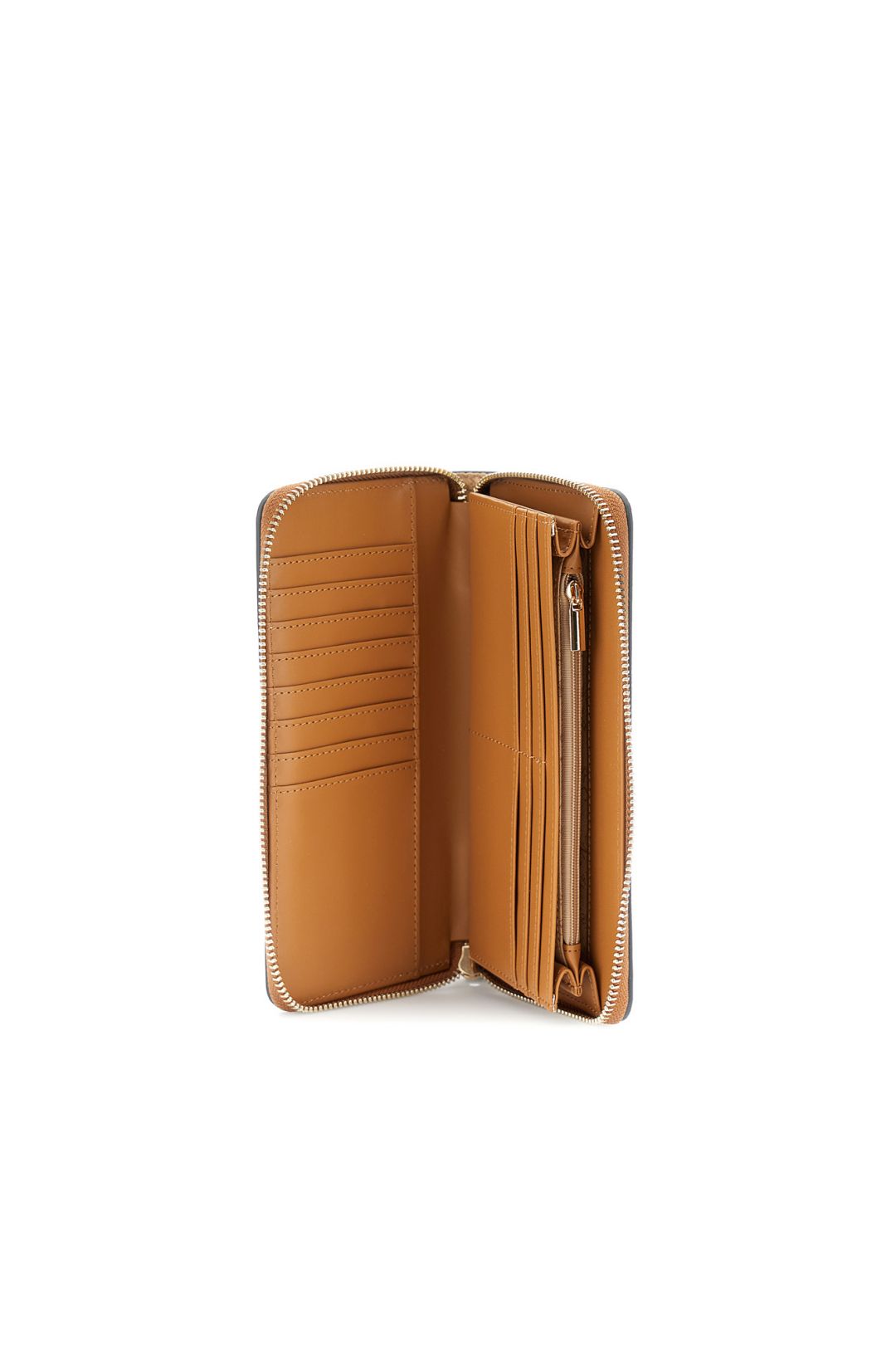 Πορτοφόλι με εφέ Saffiano και φερμουάρ, ασορτί λογότυπο και πολύχρωμα charms