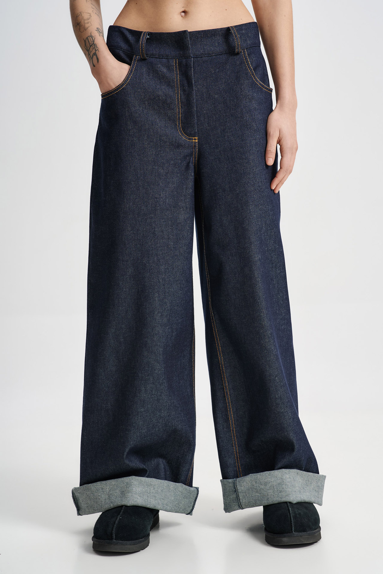 Τζιν παντελόνι σε φαρδιά γραμμή από 100% βαμβακερό μαλακό ύφασμα.