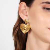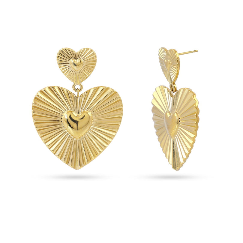 Σκουλαρίκια Essentials Vow, σχεδιασμένα από χειρουργικό ατσάλι σε χρυσό χρώμα με μια έντονη, εντυπωσιακή διπλή καρδιά. Υποαλλεργικά και ανθεκτικά στο νερό, αυτά τα σκουλαρίκια συνδυάζουν άνεση και στυλ για να σας συνοδεύουν από το πρωί μέχρι το βράδυ με φίλους. Το κλείσιμό τους με push-back εξασφαλίζει ασφαλή εφαρμογή. Αφαιρέστε τα πριν κάνετε ντους, πλύνετε τα χέρια σας ή ασκηθείτε. Εάν έρθουν σε επαφή με νερό, στεγνώστε τα καλά πριν τα αποθηκεύσετε.