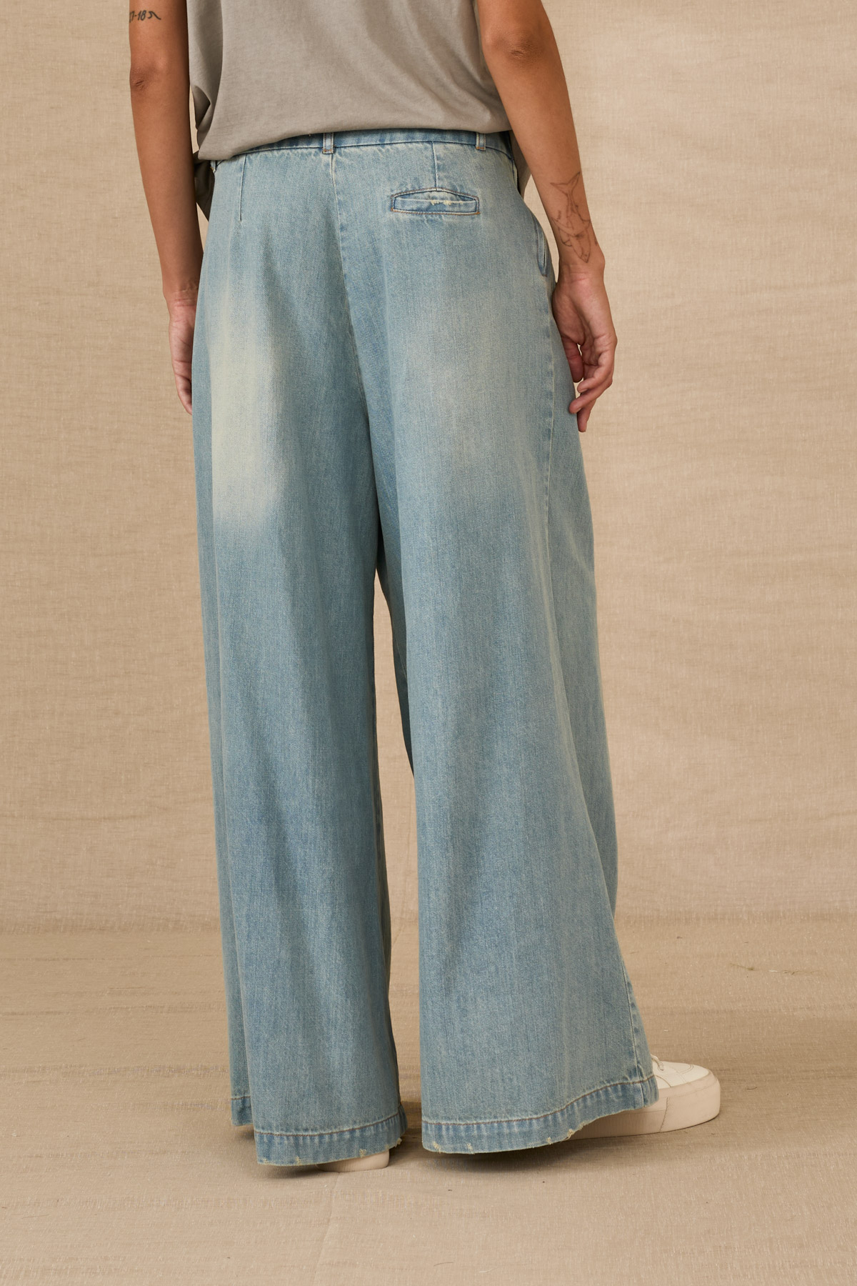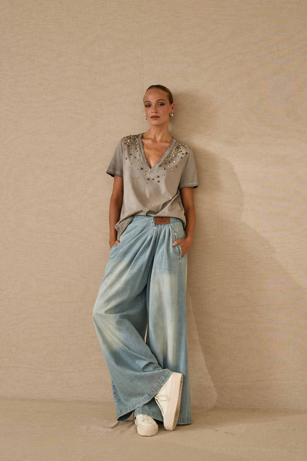 Η απόλυτη επιλογή για άνετες και στιλάτες εμφανίσεις. Αυτή η wide leg denim παντελόνα συνδυάζει σύγχρονο design με χαλαρή εφαρμογή, προσφέροντας ελευθερία κινήσεων και κομψότητα. Οι πιέτες στο μπροστινό μέρος προσθέτουν χαρακτήρα, ενώ το μαλακό denim ύφασμα την καθιστά ιδανική για all-day looks, από πρωινές βόλτες μέχρι casual εξόδους.